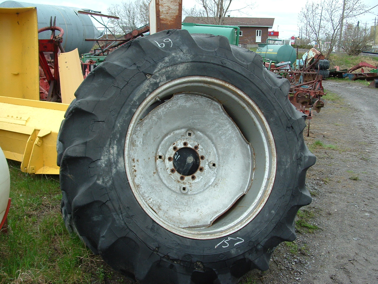 Dual Tires & Rims 8 Ply, 20.8-38, Snap On . Half Tread, Good Years Tires.